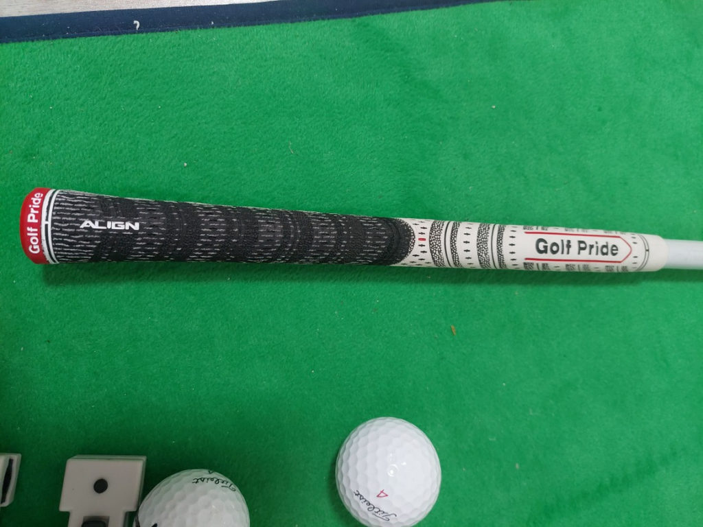 作業内容は、ピンG425のドライバーのヘッドに、新たに買った、グラファイトデザインのPY-6xのシャフトに、ピンのスリーブ、グリップは、ゴルフプライドMCC ALIGNを装着して、シャフトの含めたクラブの長さを45.5インチにして、D1-D2ぐらいのバランスで作ってほしいとのこと。早速、作業して45.5インチのD2バランスでグリップはMCC ALIGNで組みあがりました。